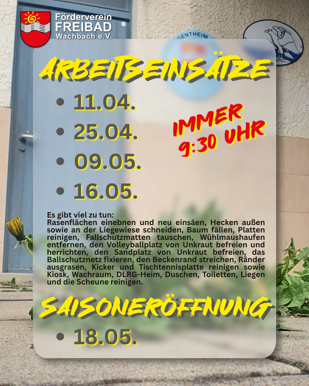 es gibt viel zu tun, um unser Freibad fit für die Saison zu machen!
